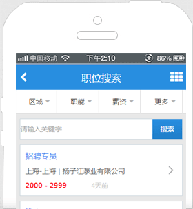 海量工作機會等著您,同一時刻您將面對數(shù)以十萬的工作機會;幫助您記憶最近搜索條件,簡化您的搜索操作。